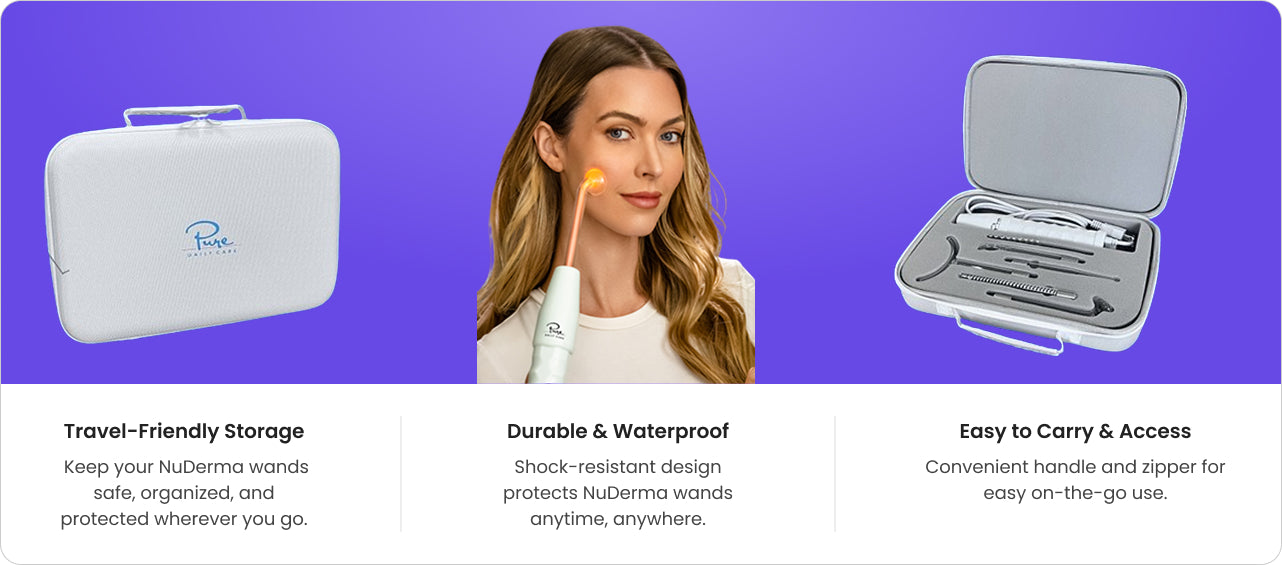 - Use the NuDerma travel case to store up to 6 wands and your NuDerma base handle (Standard, Professional, or Clinical Model).